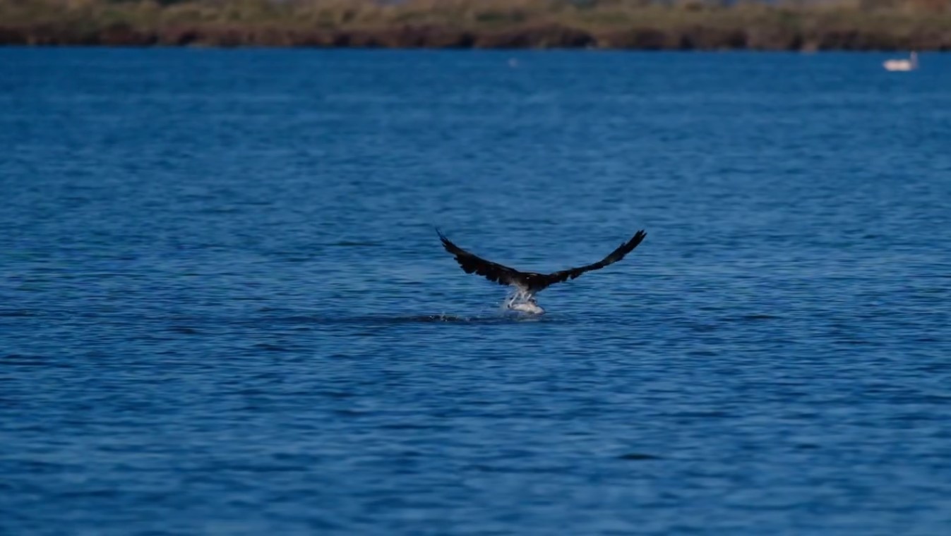 Το πλέον πρόσφατο video του, από τη λιμνοθάλασσα στην Πλώσταινα είναι πραγματικά καθηλωτικό. Εχει καταγράψει την εφόρμηση ενός αετού, που αφού έχει εντοπίσει το ψάρι μέσα στο νερό, βουτά με φοβερή ταχύτητα και γαντζώνει με τα νύχια του το θήραμα του. Αφού το περήφανο αρπακτικό τα έχει καταφέρει στη συνέχεια βγαίνει από το νερό και πετά προς τη φωλιά του, για να απολαύσει το γεύμα του…