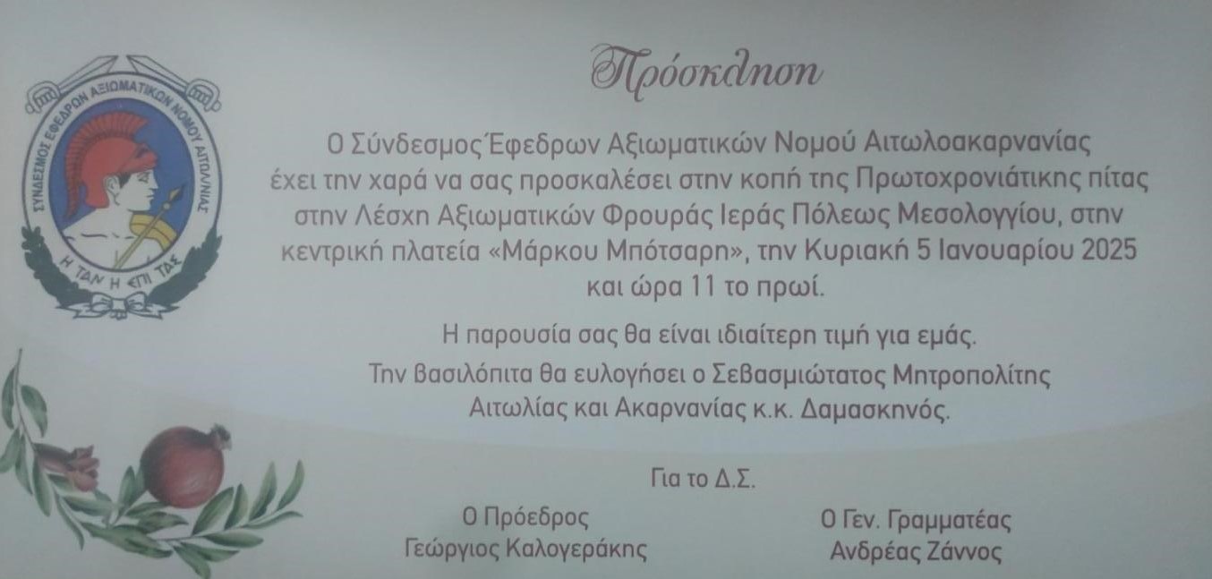 Ο Σ.Ε.Α.Ν. Αιτωλ/νίας κόβει την πρωτοχρονιάτικη πίτα του