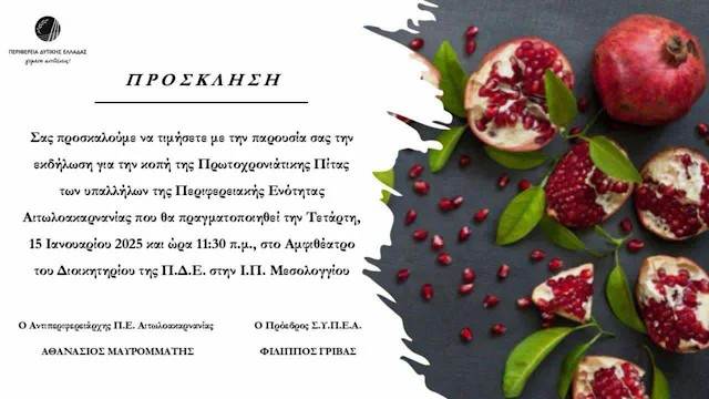 Κοπή της πρωτοχρονιάτικης πίτας στην Περιφερειακή Ενότητα Αιτωλοακαρνανίας