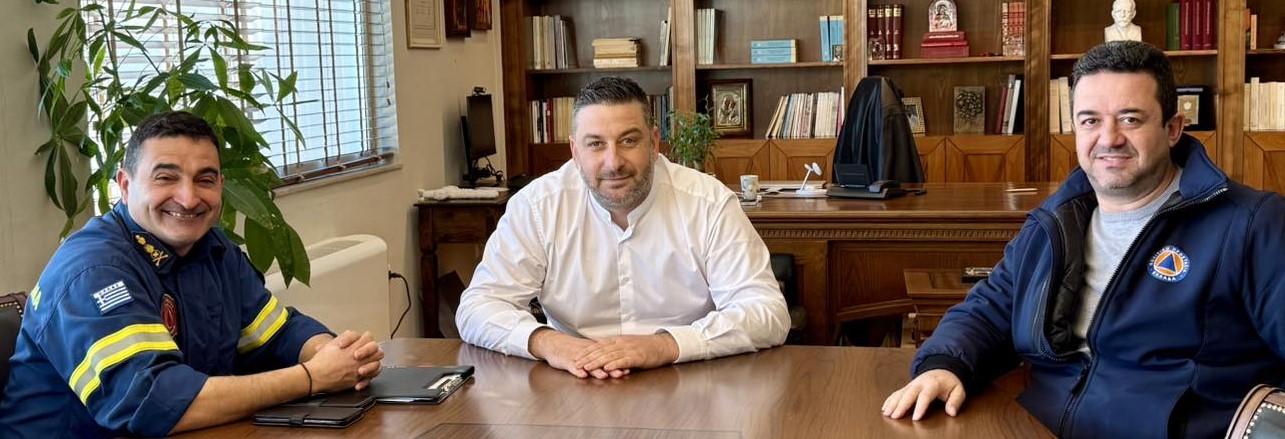 Η συνάντηση έγινε με αφορμή την ανάληψη των νέων καθηκόντων του κ. Πετράκη και συμμετείχε επίσης και ο Προϊστάμενος της Πολιτικής Προστασίας, Γιώργος Παπαδόπουλος.