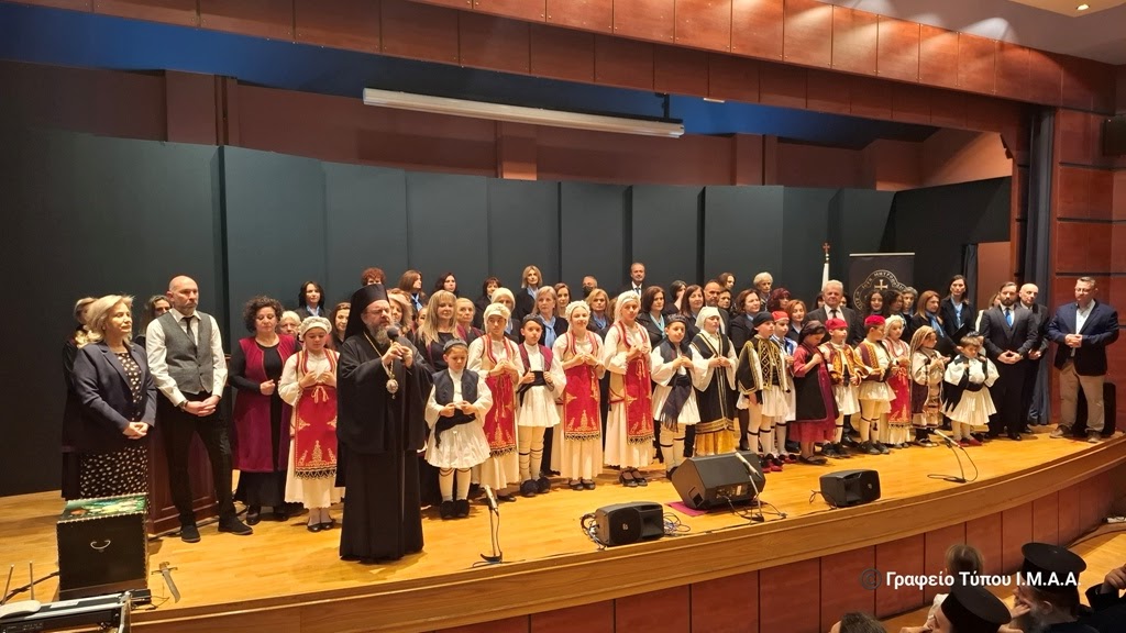 Τα μέλη των τμημάτων θεάτρου, χορωδίας και παραδοσιακών χορών του Ιδρύματος Πολιτισμού «Άγιος Ευγένιος ο Αιτωλός», της Ιεράς Μητροπόλεως Αιτωλίας και Ακαρνανίας, παρουσίασαν ένα πλούσιο εορταστικό πρόγραμμα, με επετειακά τραγούδια από τους Αγώνες της Παλιγγενεσίας του ‘21, θεατρικό έργο αφιερωμένο στην προσφορά των Γυναικών στον Αγώνα και κυρίως σε γυναικείες μορφές που έδρασαν και συμμετείχαν στην Ηρωική Έξοδο του Μεσολογγίου, καθώς και παραδοσιακούς χορούς από το παιδικό τμήμα.