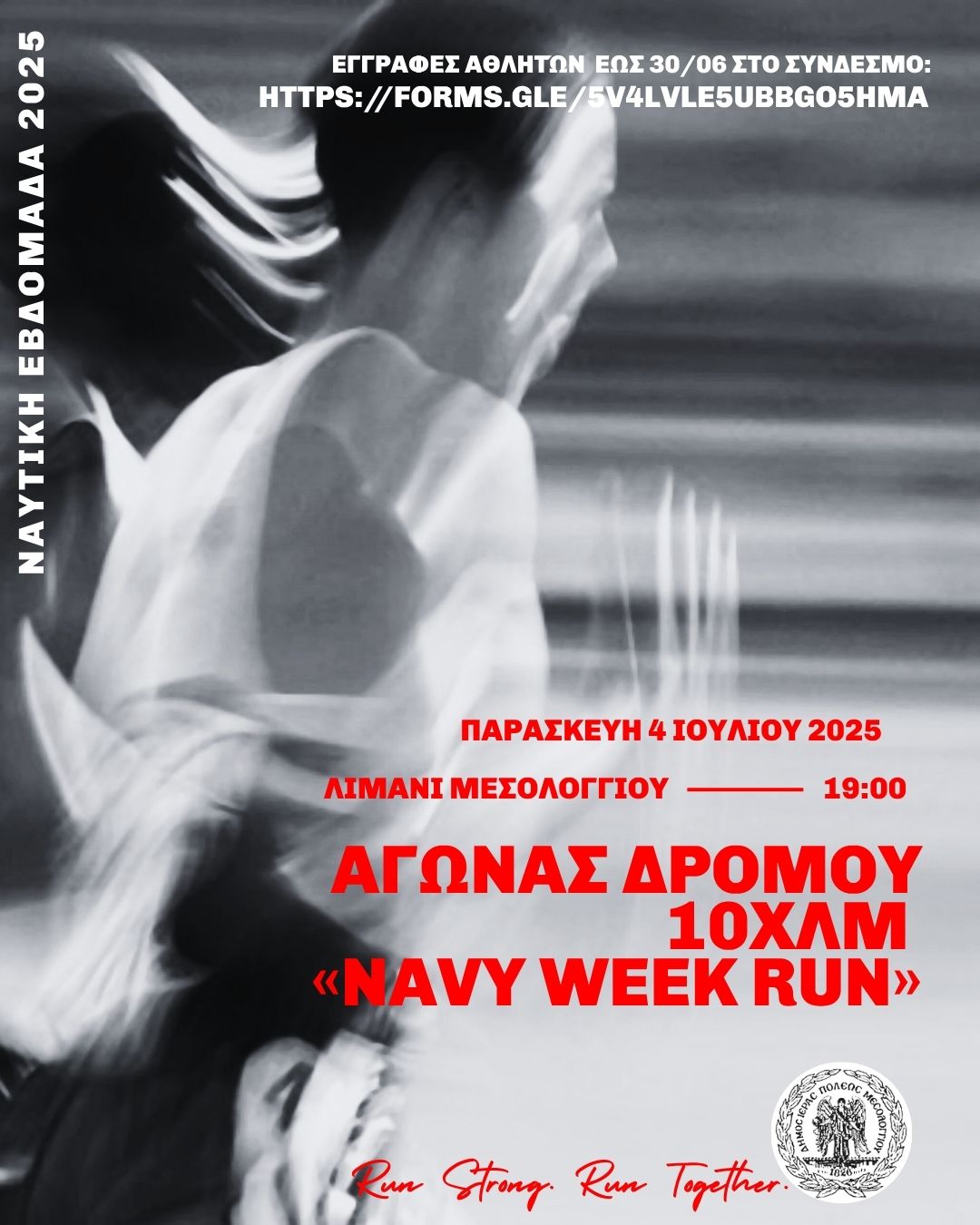 , θα διεξαχθεί στο Λιμάνι Μεσολογγίου ο Αγώνας Δρόμου 10χλμ «Navy Week Run».