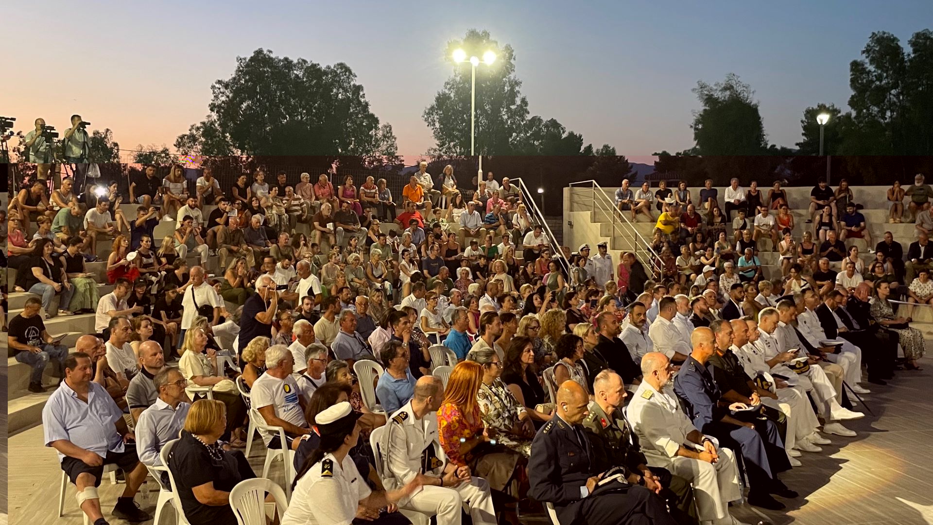 Μια καταπληκτική μουσική βραδιά με αγαπημένες μελωδίες, αλλά κι ένα υπερθέαμα με εκατοντάδες drones που δημιούργησαν μοναδικά σχέδια στον νυχτερινό ουρανό της πόλης, επεφύλαξε η μπάντα του Πολεμικού Ναυτικού που πραγματοποίησε συναυλία στο θεατράκι του Λιμανιού στην έναρξη της Ναυτικής Εβδομάδας Μεσολογγίου χθες Κυριακή, 29 Ιουνίου 2025.