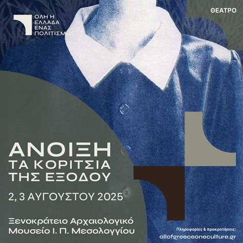 ΑΝΟΙΞΗ: Τα κορίτσια της εξόδου 2 & 3 Αυγούστου 2025 / Ώρα έναρξης: 21.00 (διάρκεια: 75') στο Ξενοκράτειο Αρχαιολογικό Μουσείο Ι. Π. Μεσολογγίου.