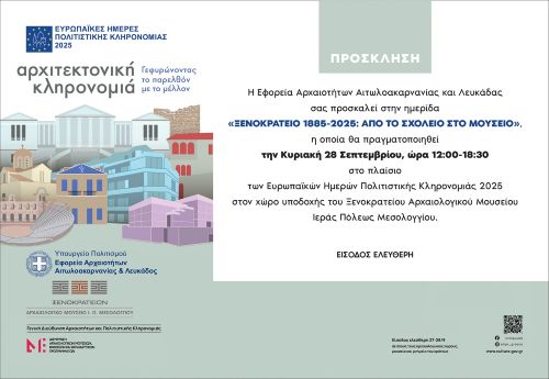 Στο Ξενοκράτειο Αρχαιολογικό Μουσείο στο Μεσολόγγι θα πραγματοποιηθεί η ημερίδα «ΞΕΝΟΚΡΑΤΕΙΟ 1885-2025: ΑΠΟ ΤΟ ΣΧΟΛΕΙΟ ΣΤΟ ΜΟΥΣΕΙΟ», η οποία, έχει στόχο την ανάδειξη του Ξενοκρατείου, κηρυγμένου ως μνημείου, και από το 2021 Κεντρικού Αρχαιολογικού Μουσείου της Π.Ε. Αιτωλοακαρνανίας, ως σημαντικού μέρους της αρχιτεκτονικής κληρονομιάς και της συλλογικής μνήμης της Ιεράς Πόλης του Μεσολογγίου.
