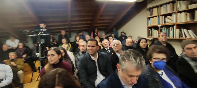 Η προσέλευση του κοινού σε αυτή την ξεχωριστή εκδήλωση ιστορικής μνήμης, αφιερωμένη στα 200 χρόνια από την Έξοδο του Μεσολογγίου, ήταν πρωτόγνωρη. Κάθε γωνιά της αίθουσας γέμισε ασφυκτικά, ενώ πολλοί κάθονταν υπομονετικά ακόμη και στα σκαλοπάτια που οδηγούσαν στον χώρο της εκδήλωσης. Όλοι με βαθιά συγκίνηση και έντονο ενδιαφέρον ήταν προσηλωμένοι στις εισηγήσεις των διακεκριμένων πανεπιστημιακών οι οποίοι προσέγγισαν το ιστορικό γεγονός από διαφορετικές, συμπληρωματικές οπτικές.