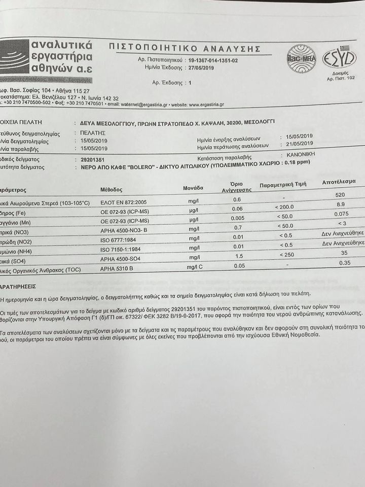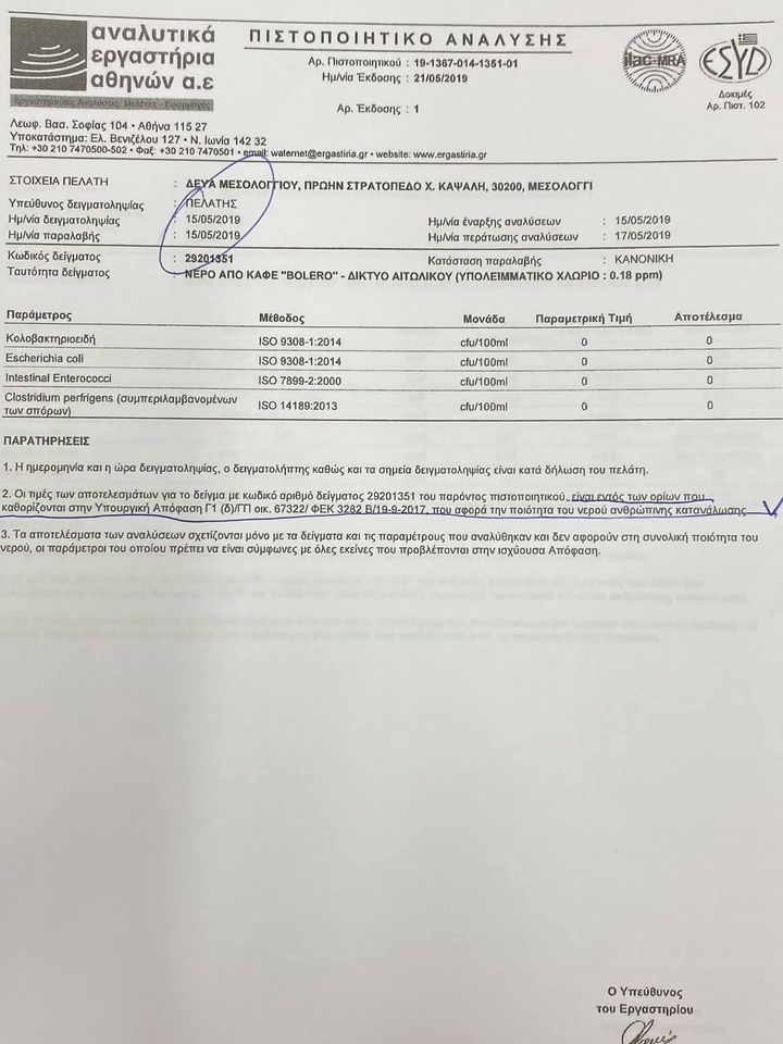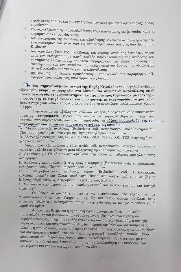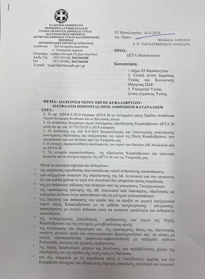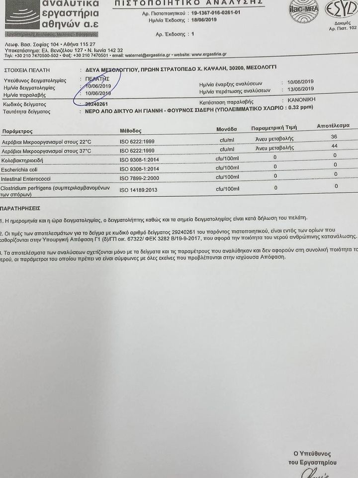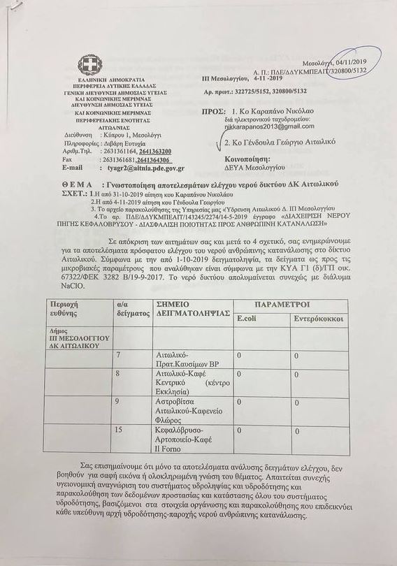 Τα στοιχεία της διεύθυνσης υγείας και της  ΔΕΥΑΜ  κατατέθηκαν στα πρακτικά , με έλεγχο και μετρήσεις τους τελευταίους 12 μήνες έως και 27/07/2020