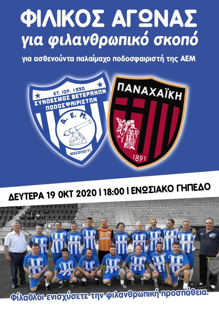 Χαιρετίζουμε και στηρίζουμε, την διοργάνωση του αγώνα μεταξύ των ομάδων των συνδέσμων παλαιμάχων ΑΕΜ και Παναχαϊκής, προς τιμήν του πρώην ποδοσφαιριστή τους και μέλους της Κομματικής Οργάνωσης Μεσολογγίου του ΚΚΕ, Δημήτρη (Τάκη) Ψαράκου.