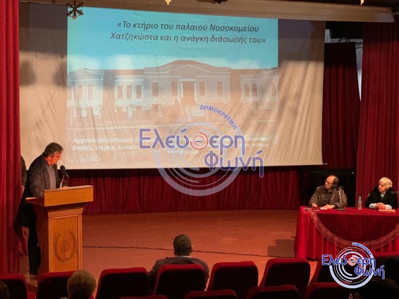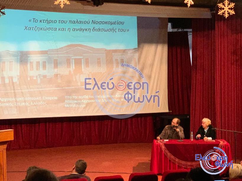 Η Αρχαιολογική-Ιστορική Εταιρεία Δυτικής Στερεάς Ελλάδος διοργάνωσε το Σάββατο 1 Φεβρουαρίου 2020, μία άκρως επιτυχημένη εκδήλωση στο Τρικούπειο Πολιτιστικό Κέντρο Μεσολογγίου, με θέμα: «Το κτήριο του παλαιού Νοσοκομείου Χατζηκώστα και η ανάγκη διάσωσής του».
