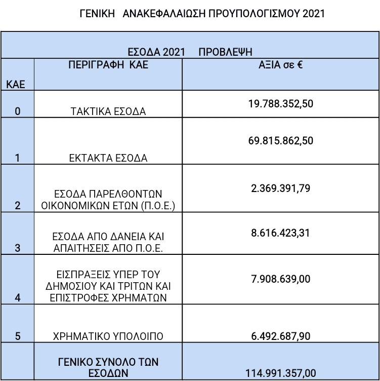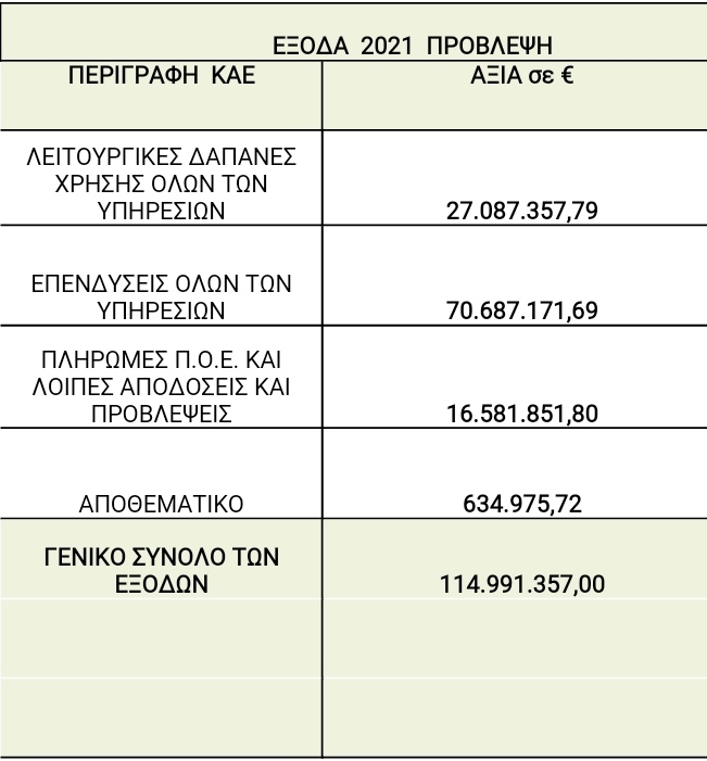 «Είναι ένας ρεαλιστικός και κοστολογημένος προϋπολογισμός που αποπνέει ορθολογική διαχείριση και αναπτυξιακή προοπτική. Φέτος καλούμαστε να λειτουργήσουμε σε ένα δύσκολο περιβάλλον λόγω της πανδημίας και να κάνουμε το καλύτερο δυνατό για τους δημότες μας. Σε αυτή την εξαιρετικά δύσκολη χρονιά πετύχαμε έναν αναβαθμισμένο προϋπολογισμό, ποιοτικά και ποσοτικά, σε σχέση με το 2020. Παρουσιάζουμε το ολοκληρωμένο πλαίσιο δράσης για το 2021 με τον προϋπολογισμό εσόδων και εξόδων.