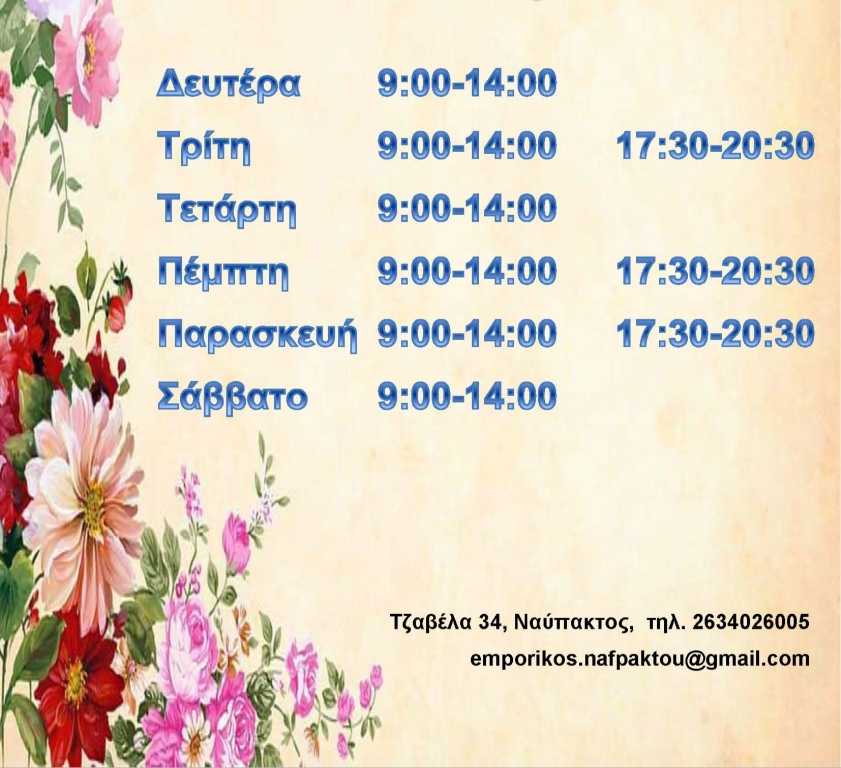 Την Δευτέρα 5 Απριλίου επιτέλους, ανοίξανε τα καταστήματα της Ναυπάκτου και περιμένουμε τους πελάτες μας, να τους εξυπηρετήσουμε με ασφάλεια τηρώντας όλα τα απαραίτητα μέτρα...