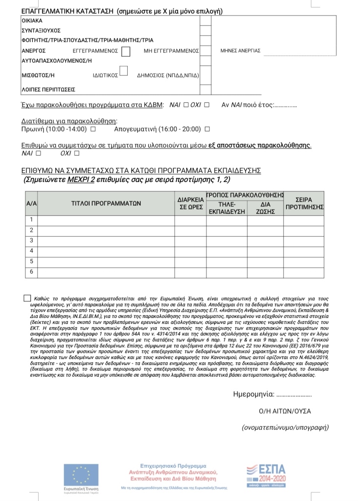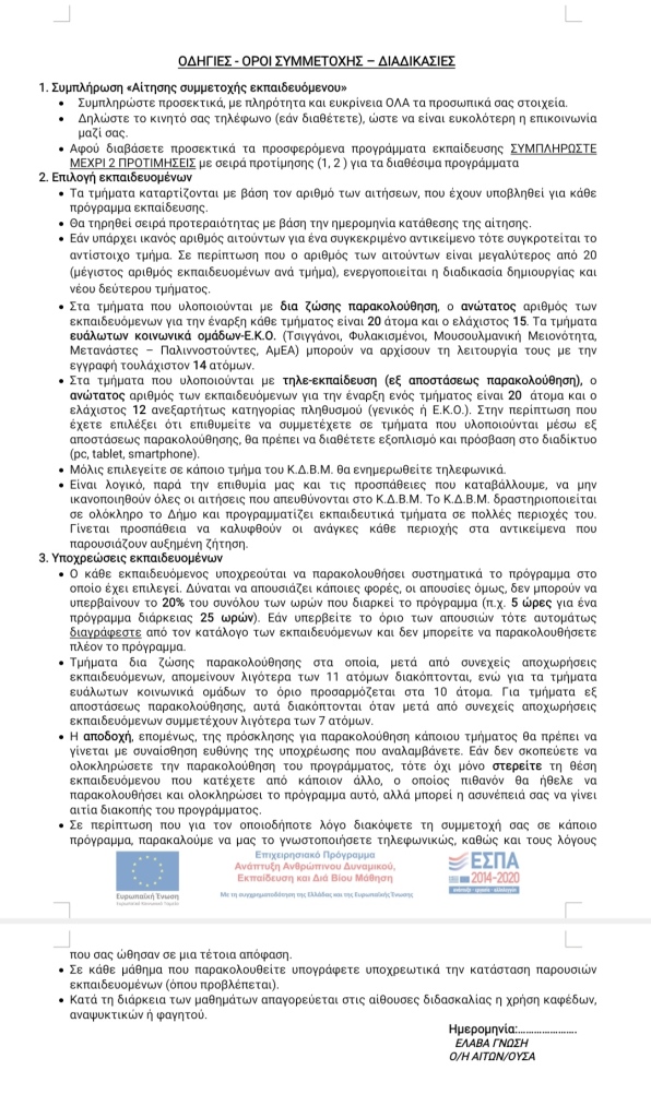 Για πληροφορίες και δηλώσεις συμμετοχής απευθυνθείτε στο Κέντρο Δια Βίου Μάθησης: