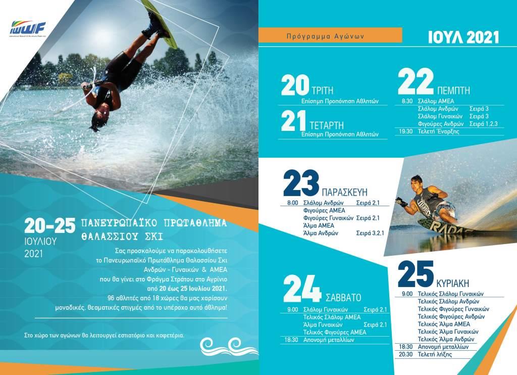 Ο Δήμος Αγρινίου, η Περιφέρεια Δυτικής Ελλάδας και η Ελληνική Ομοσπονδία Θαλασσίου Σκι συνδιοργανώνουν το Πανευρωπαϊκό Πρωτάθλημα Ανδρών Γυναικών και Αμεα στις 22- 25 Ιουλίου στο Φράγμα Στράτου στο Αγρίνιο.