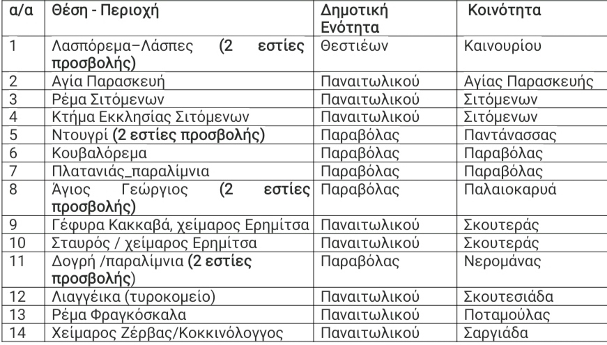 Ειδικότερα για το Δήμο Αγρινίου οι εστίες προσβολής εντοπίστηκαν στις ακόλουθες περιοχές :