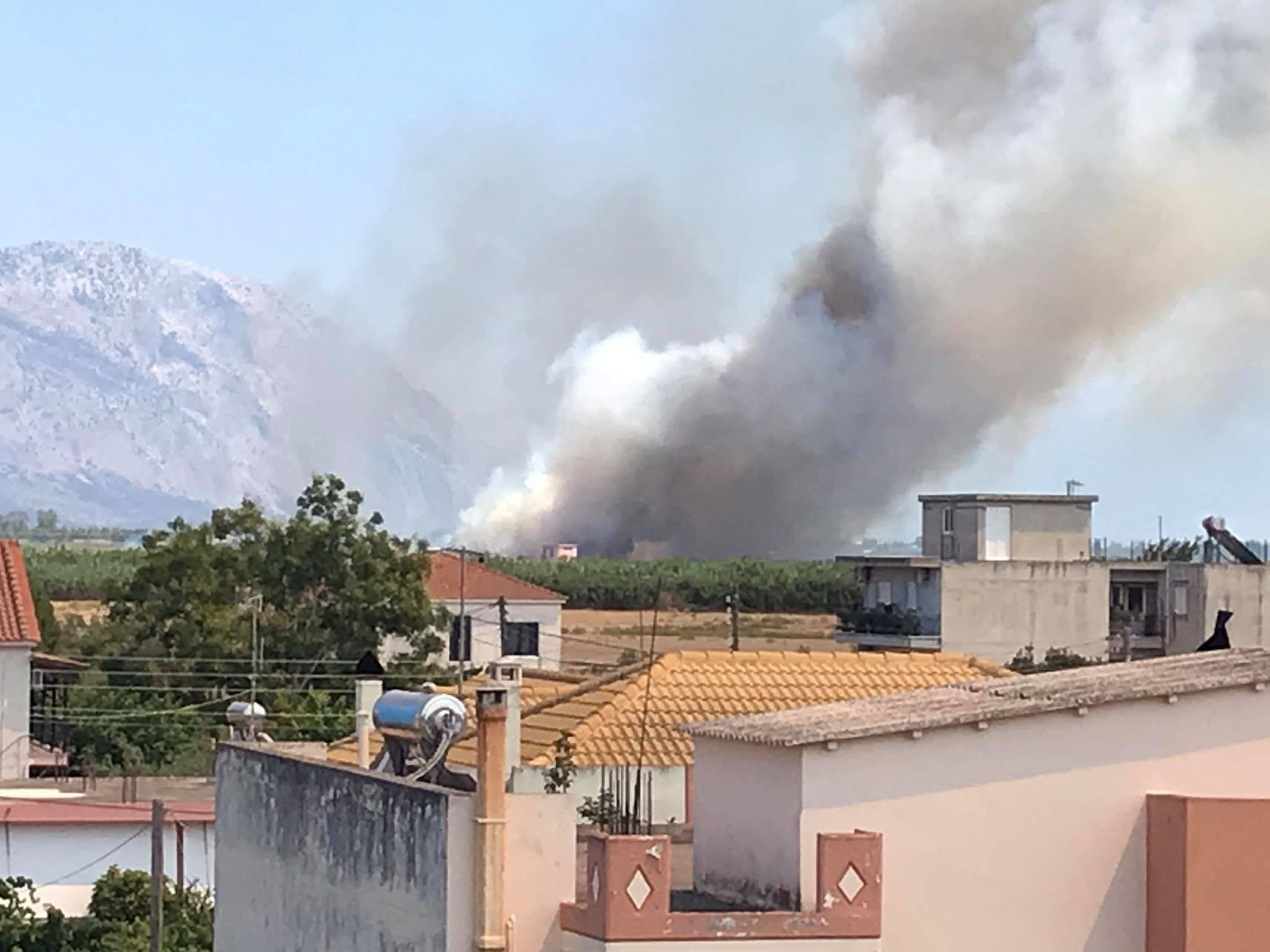 Επισκέπτες και ντόπιοι απορούν με την εικόνα που φαίνεται από την παραλία Τουρλίδας, με τον καπνό να σκεπάζει τα ανατολικά αλίπεδα.