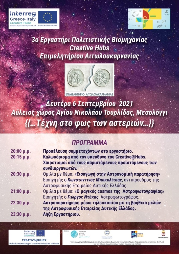 Επιμελητήριο Αιτωλοακαρνανίας: «Τέχνη στο φως των αστεριών» 3ο Εργαστήρι Πολιτιστικής Βιομηχανίας Cretive Hubs