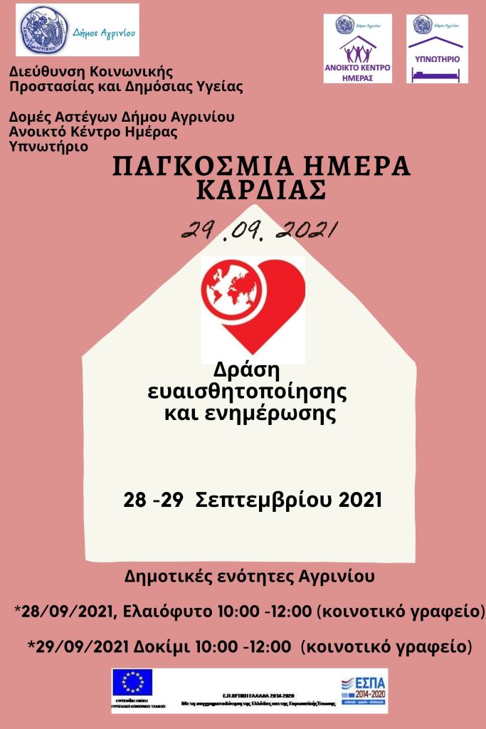 Η 29η Σεπτεμβρίου έχει οριστεί ως Παγκόσμια Ημέρα Καρδιάς και στόχος είναι η ευαισθητοποίηση του κοινού για τα καρδιαγγειακά νοσήματα που τις τελευταίες δεκαετίες αποτελούν μάστιγα.