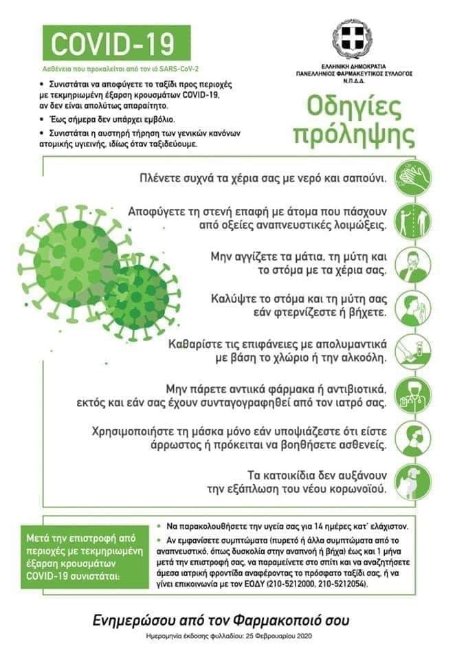Ο κ. Θανάσης Παπαθανάσης, Αντιπρόεδρος του Πανελλήνιου Φαρμακευτικού Συλλόγου και Πρόεδρος του Φαρμακευτικού Συλλόγου Αιτωλοακαρνανίας δήλωσε «Η ενημέρωση και η πρόληψη είναι τα όπλα μας για την καλύτερη αντιμετώπιση του κορονοϊού. Χρειάζεται ψυχραιμία και όχι πανικός. Όλοι και κυρίως οι ευπαθείς ομάδες πρέπει να τηρούν τους κανόνες πρόληψης και τα μέτρα υγιεινής. Η έγκαιρη και έγκυρη ενημέρωση των πολιτών που γίνεται από την πρώτη στιγμή θα συνεχισθεί. Οι φαρμακοποιοί είμαστε στη διάθεση όλων των πολιτών οποιαδήποτε στιγμή μας χρειαστούν»