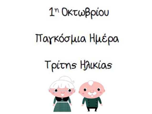 Σύμφωνα με τον ΟΗΕ από το 1990 καθιερώθηκε η 1 η Οκτωβρίου ως Παγκόσμια ημέρα για την Τρίτη Ηλικία. Τη γενιά της προσφοράς, τη γενιά της γνώσης και τη γενιά των εμπειριών που έχει μεγάλη συμμετοχή στην κοινωνική και οικονομική ζωή κάθε τόπου με απόλυτη δοτικότητα και αγάπη στις επόμενες γενιές (παιδιά-εγγόνια) , αλλά και πολλά προβλήματα.