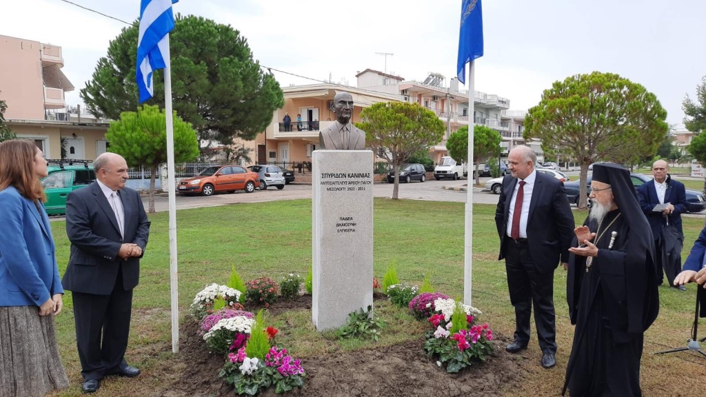 «Με μία σεμνή και λιτή τελετή, ο Δήμος Ι.Π Μεσολογγίου τίμησε την Κυριακή (25/10/2021) τον Αντεισαγγελέα του Αρείου Πάγου Σπ. Κανίνια, με τα αποκαλυπτήρια της προτομής του, στην ομώνυμη πλατεία στην συνοικία Φιλελλήνων (Ανατολικά Αλίπεδα).