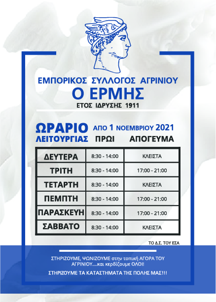 Εμπορικός Αγρινίου: Ωράριο καταστημάτων από 1η Νοεμβρίου