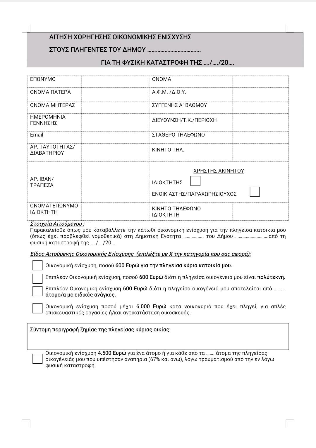 - Έντυπο Αίτησης