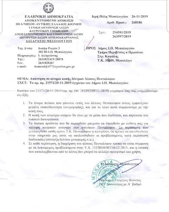 Η μελέτη για το δασάκι υπάρχει , υπάρχει επίσης έγκριση από το δασαρχείο η οποία μάλιστα υπογράφηκε από τον τότε δασάρχη επί θητείας της σημερινής δημοτικής αρχής και το σημαντικότερο είναι ότι και τα χρήματα υπάρχουν στο ταμείο για το συγκεκριμένο έργο από το 2018.