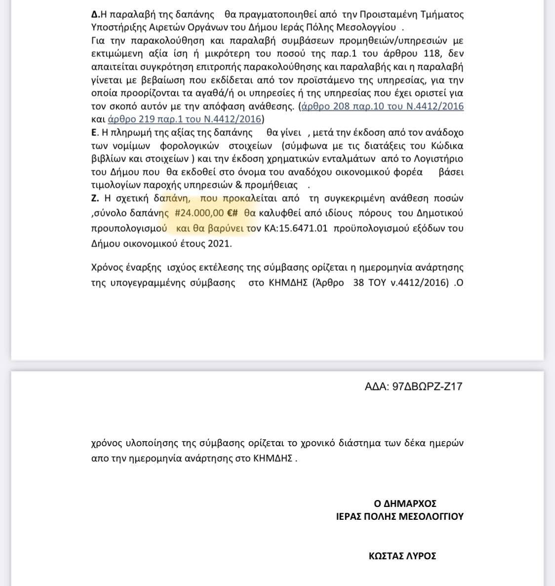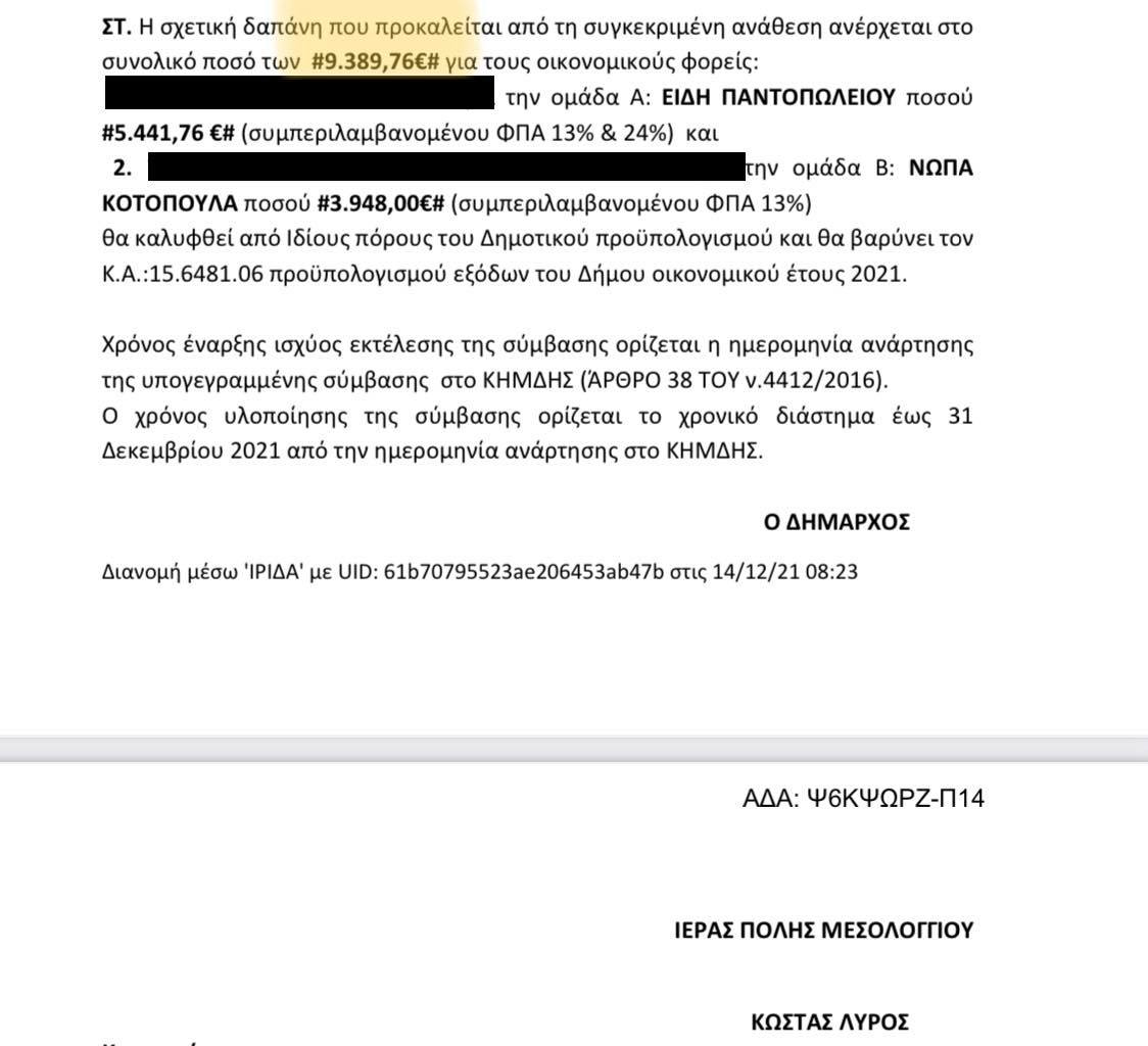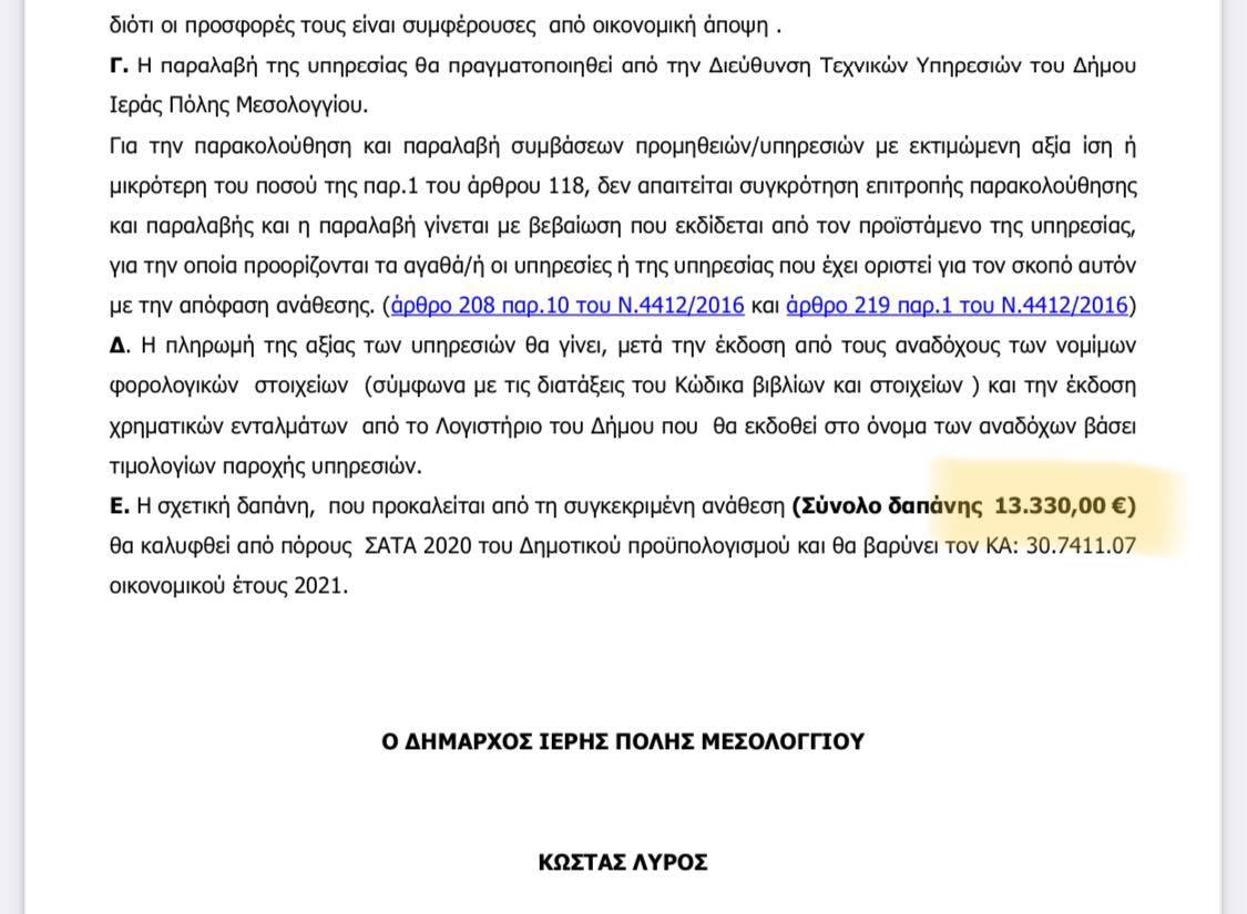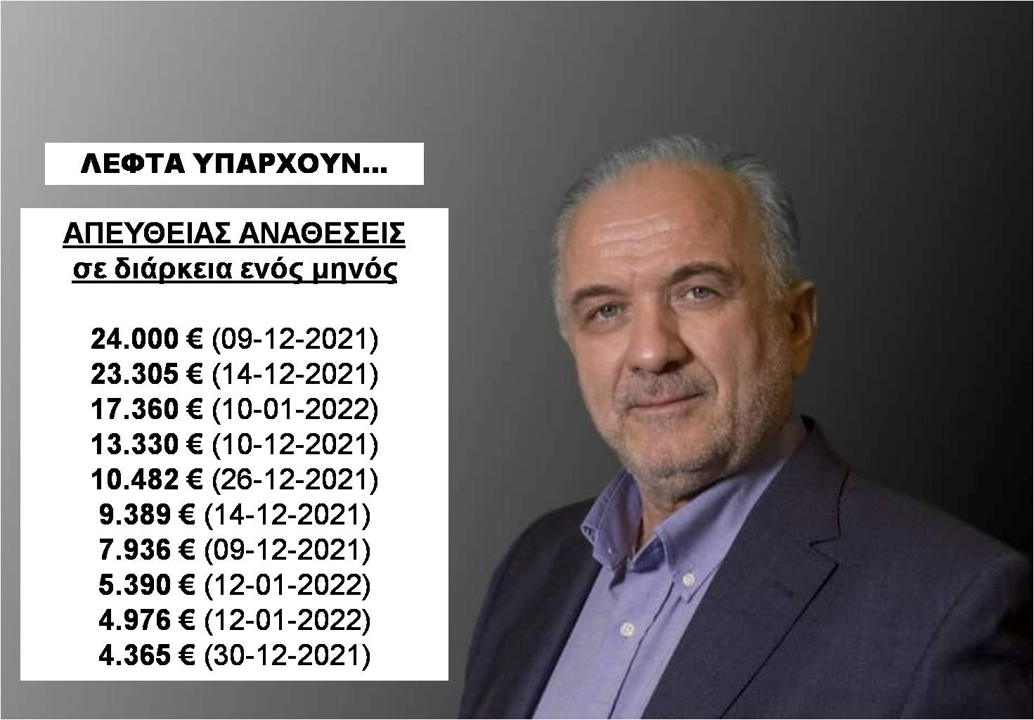 Παραθέτουμε παρακάτω απευθείας αναθέσεις που τις υπογράφει ο ίδιος ο δήμαρχος, σε διάρκεια ΕΝΟΣ ΜΟΝΟ ΜΗΝΟΣ…