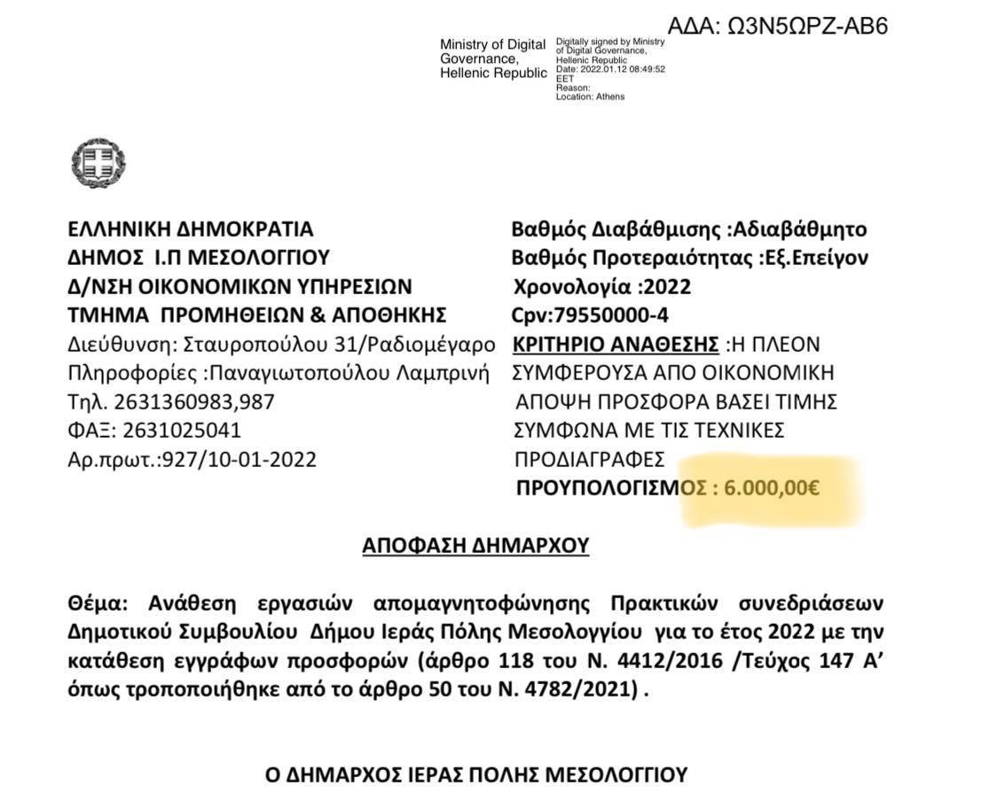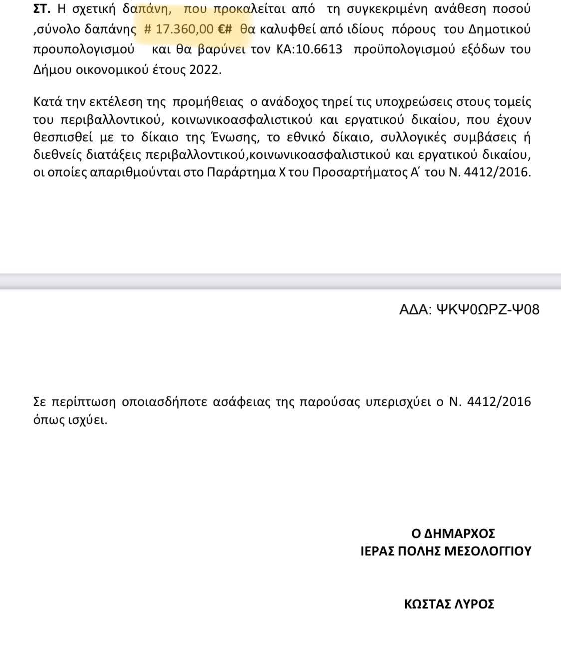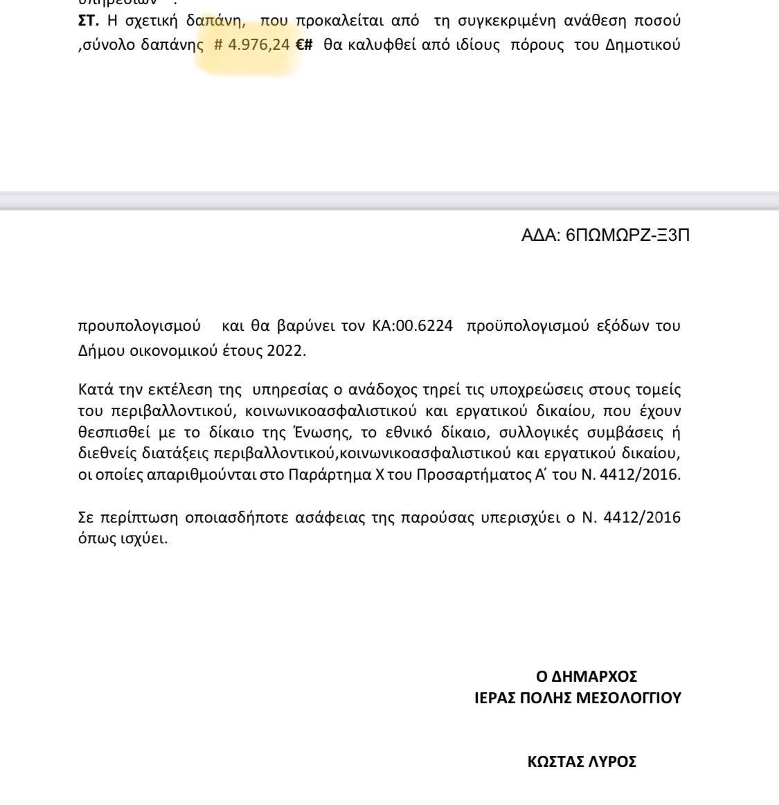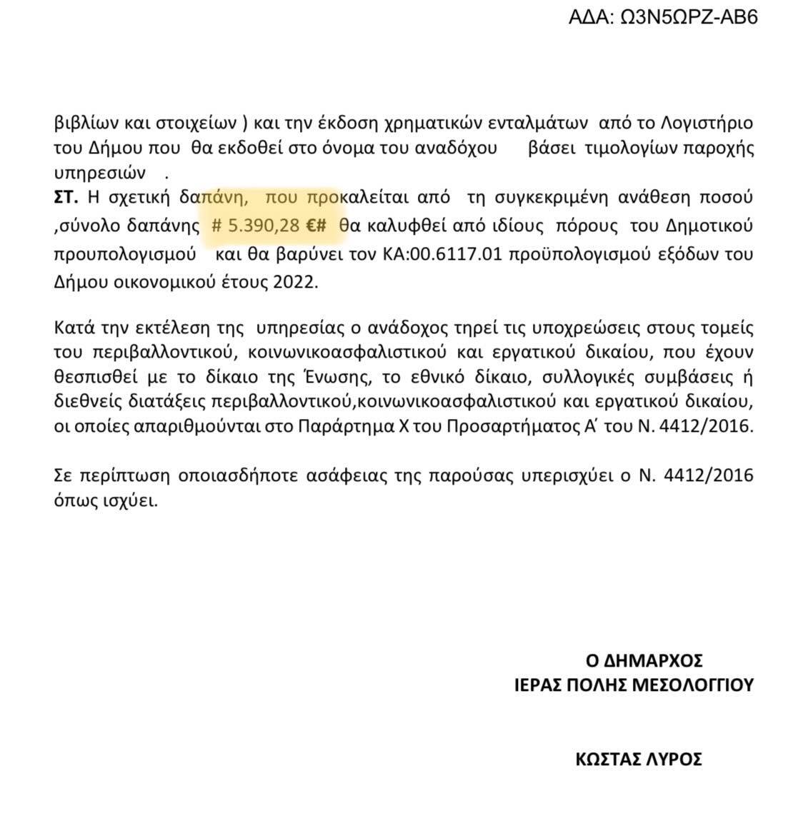 Παραθέτουμε παρακάτω απευθείας αναθέσεις που τις υπογράφει ο ίδιος ο δήμαρχος, σε διάρκεια ΕΝΟΣ ΜΟΝΟ ΜΗΝΟΣ…