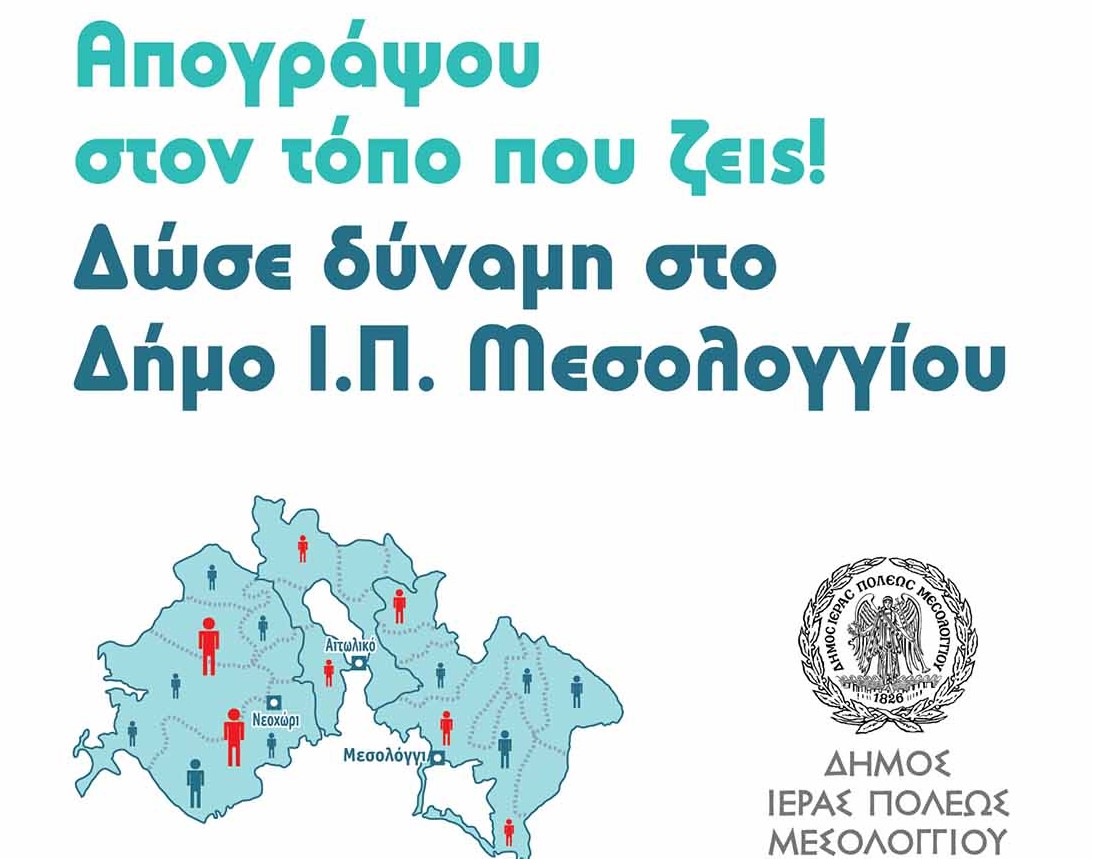 Ο Δήμος Ιεράς Πόλεως Μεσολογγίου σε συνεργασία με την Ελληνική Στατιστική Αρχή / Περιφερ. Υπηρεσία Στατιστικής Π.Ε. Αιτωλ/νίας, έχει ήδη θέσει σε λειτουργία Γραφείο Απογραφής για τη διευκόλυνση των πολιτών που δεν έχουν ακόμη απογραφεί.