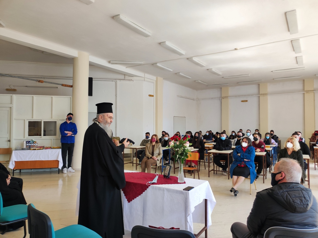 Ο Σεβασμιώτατος μίλησε στους μαθητές των δύο Σχολών (Μαγειρικής Τέχνης και Ξενοδοχειακών Επιχειρήσεων), παρουσία του Διευθυντή και Καθηγητών των Σχολών και απάντησε στις ερωτήσεις που του έθεσαν.