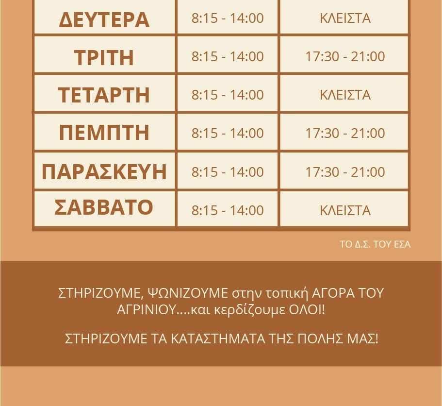 Εμπορικός Σύλλογος Αγρινίου: Ωράριο καταστημάτων από 28 Μαρτίου 2022