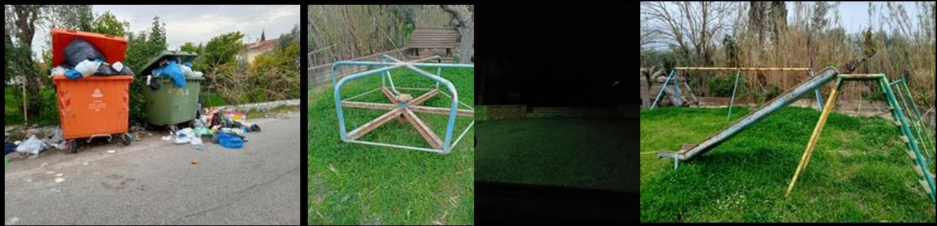 Το χειρότερο είναι, ότι τα παιδιά δεν μπορούν να παίξουν στην πλατεία, λόγω απόλυτου σκοταδιού, αλλά ούτε και στην παιδική χαρά, καθώς εδώ και μήνες βρίσκεται σε αυτή εδώ την κατάσταση.