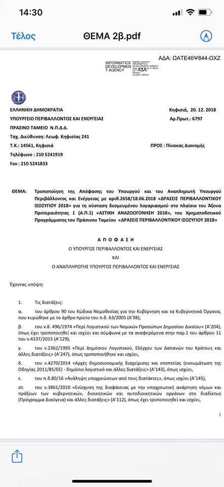 Η πρόταση μας εγκρίθηκε και ευχαριστούμε τον Υπουργό και τον πρόεδρο του Πρασίνου Ταμείου για την αξιολόγηση και έγκριση!!!