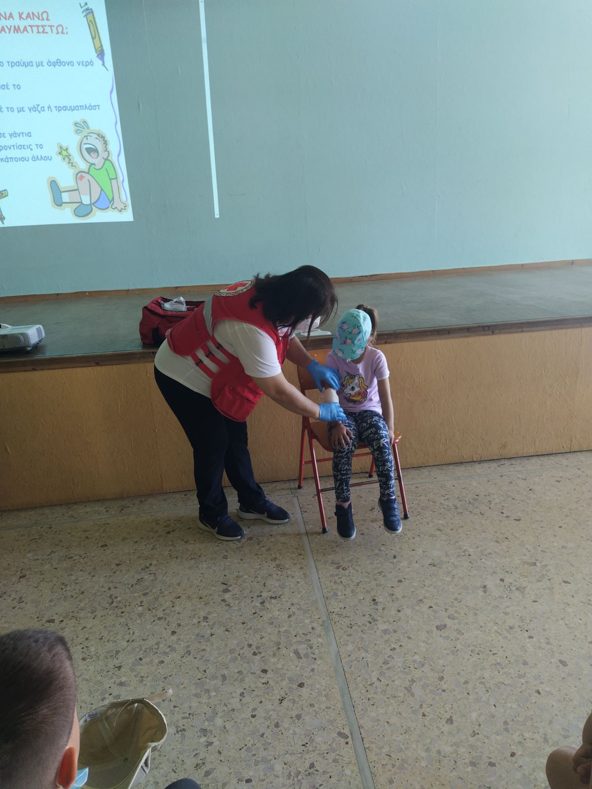 Οι μαθητές έμαθαν πώς να καλούν σε βοήθεια τους αριθμούς έκτακτης ανάγκης αλλά και τι πρέπει να κάνουν σε περιπτώσεις μικροτραυματισμών, τσιμπημάτων, εγκαυμάτων, ρινορραγίας καθώς και πνιγμού από ξένο σώμα.