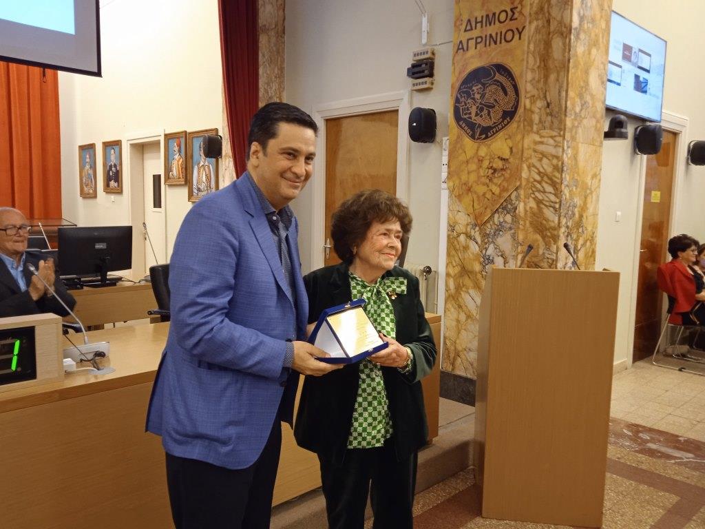 Παρουσία πολλών Αγρινιωτών ο Δήμαρχος Αγρινίου τίμησε την κ. Μαίρη Χρυσικοπούλου, Πρόεδρο του Λαογραφικού – Ιστορικού – Φιλολογικού Μουσείου Αιτωλοακαρνανίας στην αίθουσα συνεδριάσεων του Δημοτικού Συμβουλίου.