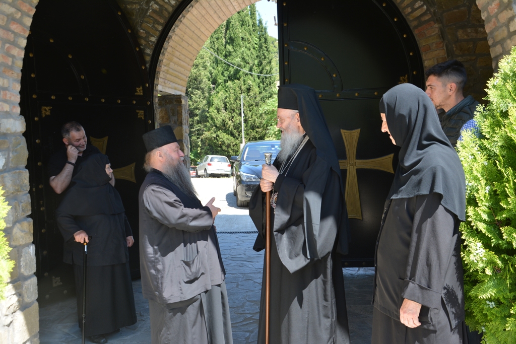 Στη συνέχεια ο Σεβασμιώτατος Τοποτηρητής επισκέφθηκε την γυναικεία Ιερά Μονή Γενεσίου της Θεοτόκου Κατερινούς, όπου τον υποδέχθηκε η Αδελφότητα και οι προσκυνητές. Η Ηγουμένη της Μονής, γερόντισσα Μαριάμ ξενάγησε τον Μητροπολίτη στους χώρους της Μονής και στο καθολικό που είχε υποστεί σοβαρές φθορές από πυρκαγιά πριν από ένα χρόνο περίπου και στη συνέχεια στο αρχονταρίκι της Μονής ακολούθησε πνευματική επικοινωνία και συζήτηση με τους προσκυνητές της Μονής.