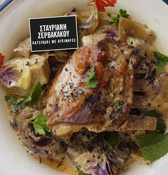 Αρνάκι με αγκινάρες και γιαουρτολέμονο με μαστίχα