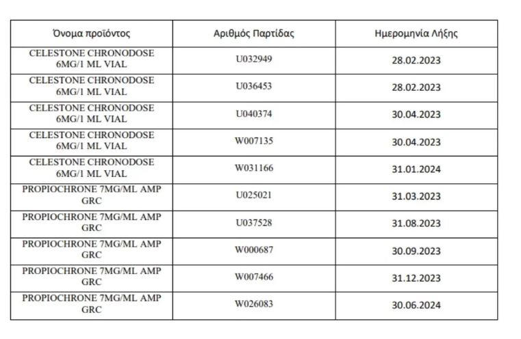 Αναλυτικά τα ανακληθέντα φάρμακα, ο αριθμός παρτίδας και η ημερομηνία λήξης για το καθένα: