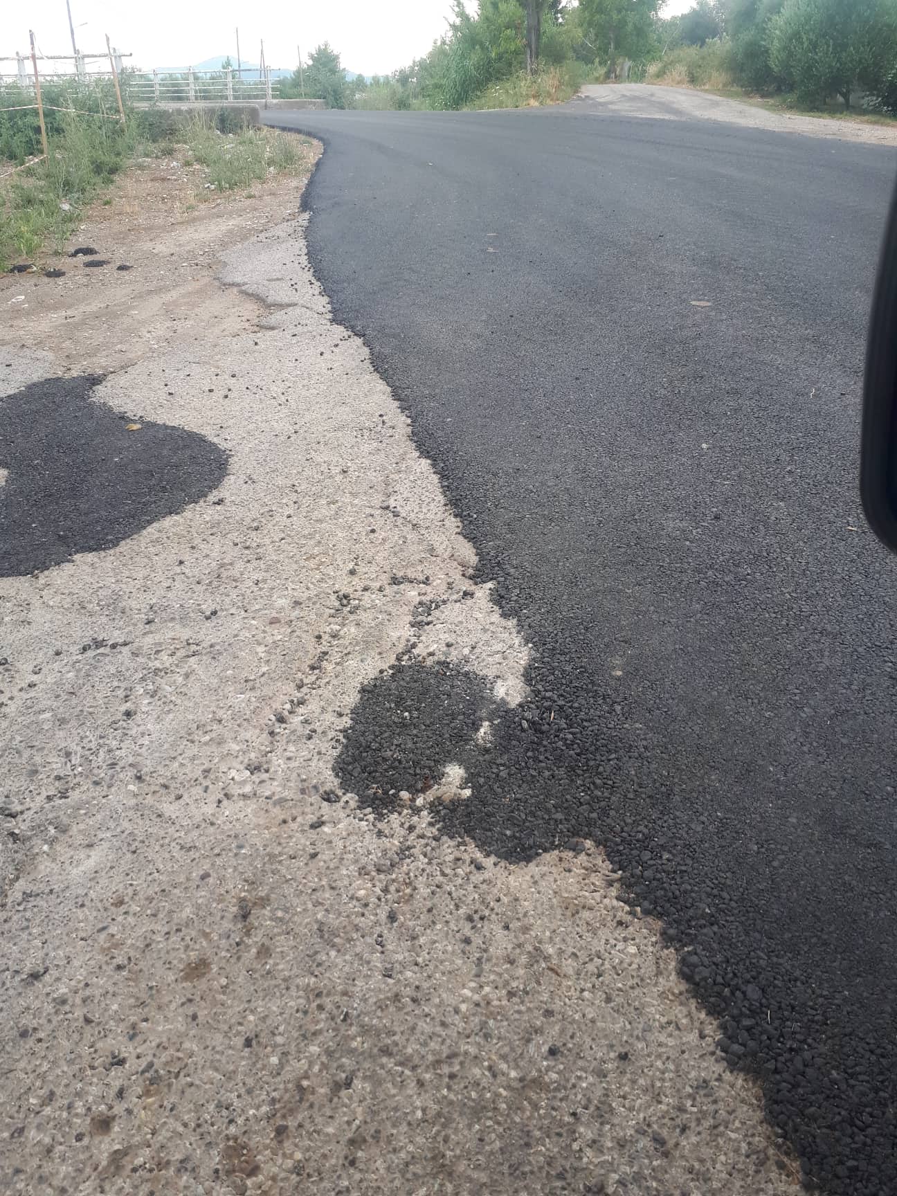Το «ξύσιμο» του παλαιού ασφαλτοτάπητα σε όλο το μήκος του δρόμου» αφορά ένα πολύ μικρό τμήμα του δρόμου. Στο μεγαλύτερο μέρος του δρόμου έστρωσαν πίσσα πάνω από τη φθαρμένη πίσσα, διότι απλά και όπως είχα προειδοποιήσει, ο εναπομείναν προϋπολογισμός του έργου μετά την έκπτωση του 60% δεν επαρκεί. (ακολουθούν οι σχετικές ΦΩΤΟ)