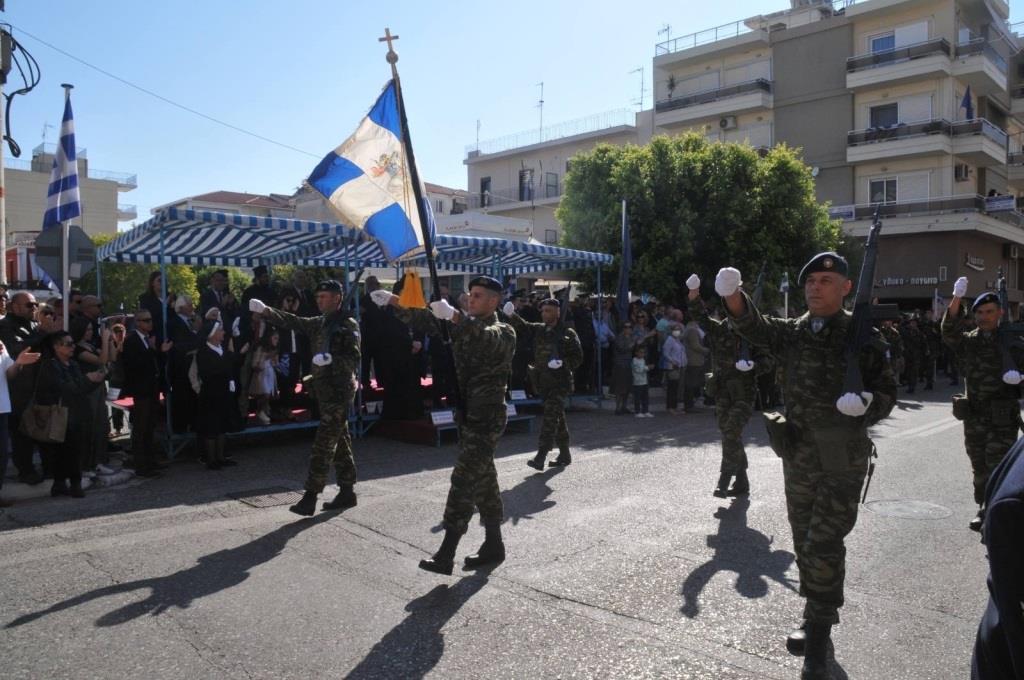 Ακολούθησε Επιμνημόσυνη Δέηση και κατάθεση Στεφάνων στο Ηρώο Πεσόντων των Τελευταίων Πολέμων (Τρίγωνο). Τήρηση ενός λεπτού σιγή στη μνήμη των ενδόξων νεκρών και ανάκρουση Εθνικού Ύμνου. Οι εκδηλώσεις ολοκληρώθηκαν με την παρέλαση μαθητών, μαθητριών, Αναπήρων και Θυμάτων Πολέμου, Προσκόπων, Οδηγών και Τμήματος Ε.Ε.Σ (τμήματος Μεσολογγίου), Πυροσβεστικής, Αστυνομίας και του Στρατού