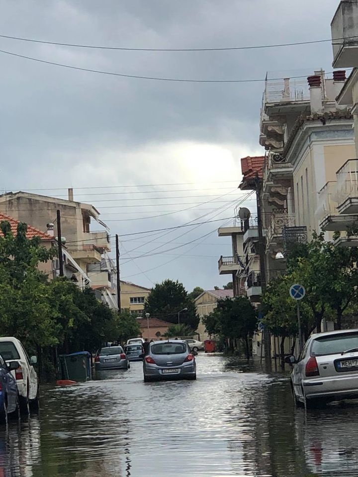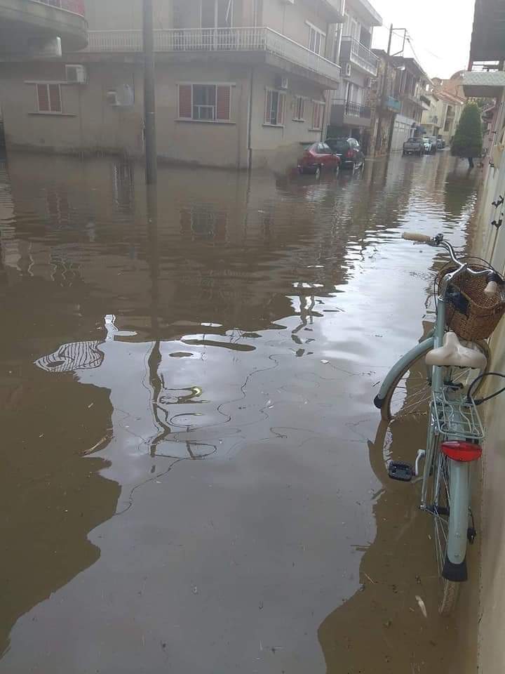 Σε μια απέραντη λιμνοθάλασσα έχει μετατραπεί η πόλη του Μεσολογγίου μετά από την μεσημεριανή καταιγίδα η οποία έφτασε σε σημείο να μετατρέψει τους δρόμους της πόλης σε λίμνη.