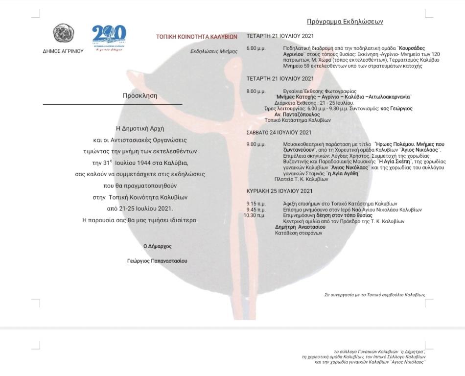 Δήμος Αγρινίου: Πρόσκληση στις εκδηλώσεις μνήμης στα Καλύβια