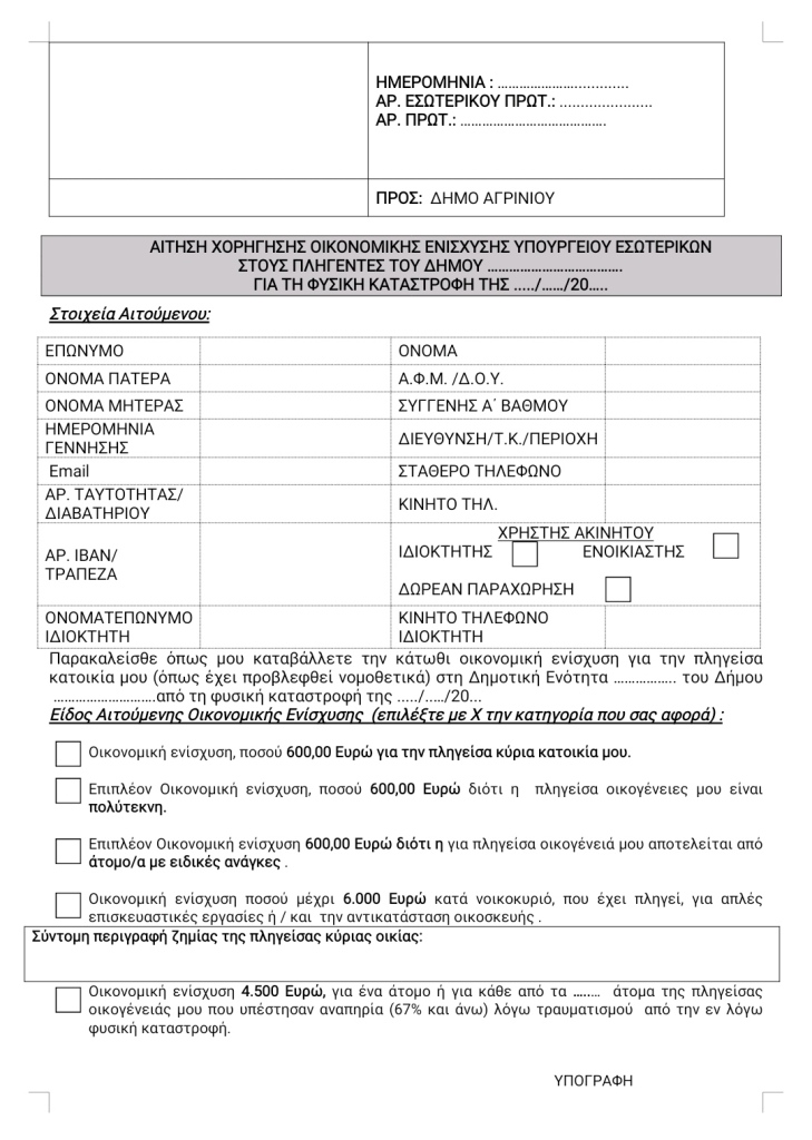 Διαδικασία υποβολής αιτήσεων πλημμυροπαθών στο Δήμο Αγρινίου