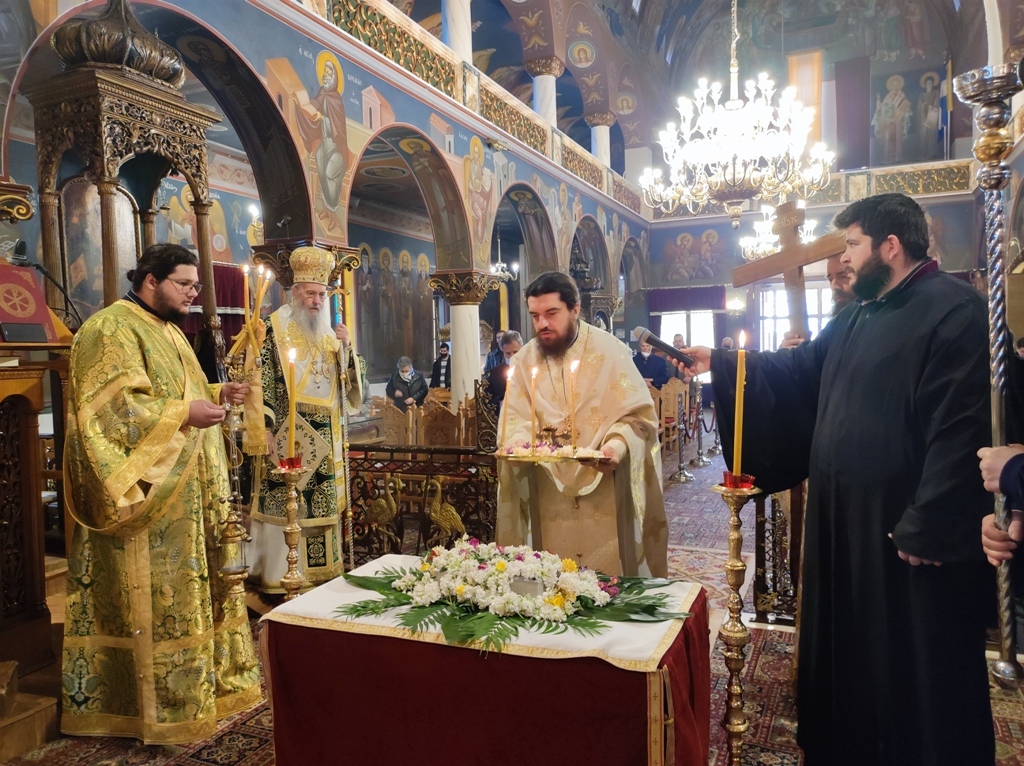 Κατά την έναρξη του Εσπερινού μετέφερε στον Ιερό Ναό την δεξιά χείρα του αγίου Καλλινίκου, Επισκόπου Εδέσσης, η οποία ετέθη στο μέσον του Ναού, δίπλα από τον Τίμιο Σταυρό, προς προσκύνηση, ενίσχυση και αγιασμό των πιστών.
